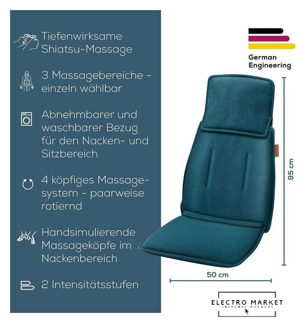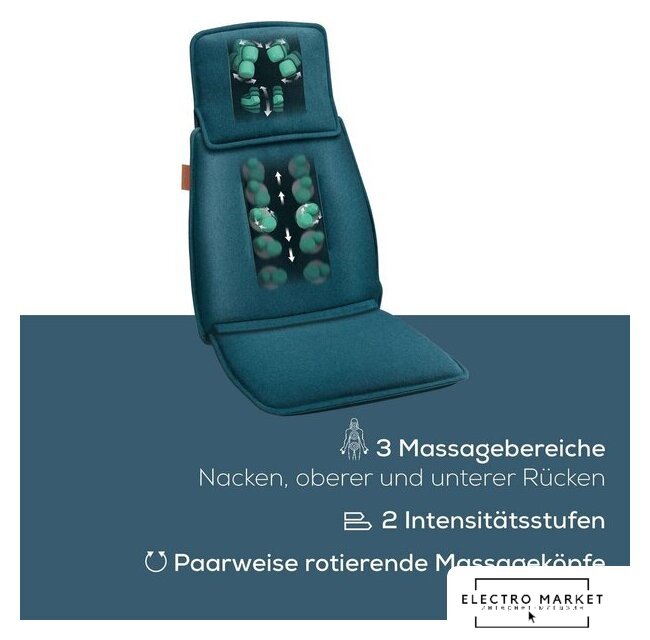 роликовый массаж, воздушный массаж, массаж шиацу, разминающий массаж, подогрев, питание: сеть 230В, размеры: 44x28x45 см
