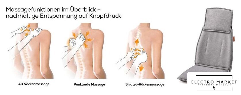 роликовый массаж, воздушный массаж, похлопывание, массаж шиацу, разминающий массаж, вибромассаж, питание: сеть 230В, размеры: 46x84x46 см