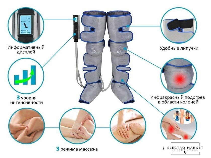 роликовый массаж, воздушный массаж, подогрев, питание: сеть 230В, размеры: 38x24.3x44 см