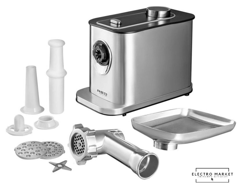 | Полная комплектация | моторный блок, шнек мясорубки, нож мясорубки, блок мясорубки, загрузочный лоток, фиксирующее кольцо, перфорированные диски для различных видов фарша (3 шт.), толкатель мясорубки, основание насадки для колбасок/кеббе, насадка для колбасок, насадка для кеббе, руководство по эксплуатации и гарантийный талон |