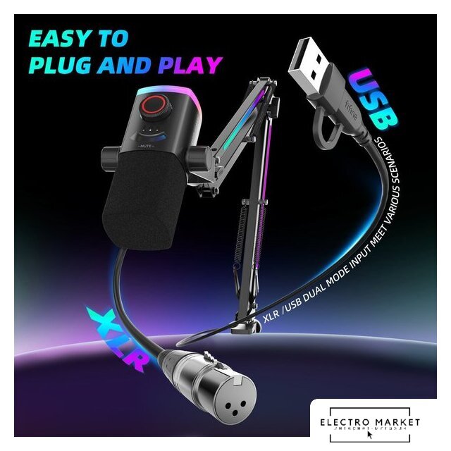 динамический, настольный, для стриминга и подкастов, кардиоидная направленность, 70-15000 Гц, разъем подключения USB Type-A, длина кабеля 2.5 м