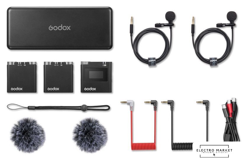 Комплект поставки | - 2 передатчика Virso TX- приемник Virso RX- 2 петличных микрофона- 2 съемных ветрозащиты- аудиокабель 3.5 мм TRS-TRRS - аудиокабель 3,5 мм TRS-TRS- зарядный кабель USB Type-A - 3 USB Type-C - ремешок - зарядный кейс- чехол - документация |