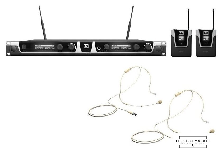 | Состав комплекта | два портативных передатчика, настольный приемник, два головных микрофона |