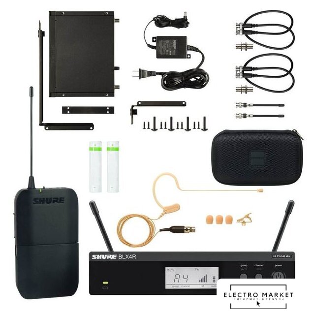 Комплект поставки | • Головной микрофон MX153;• Приемник BLX4R;• Передатчик BLX1;• Крепление для монтажа в стойку, короткое• Крепление для монтажа в стойку, длинное• Соединительная пластина• Набор для монтажа в стойку• Держатель для микрофона• Адаптер с резьбой для микрофонной стойки• 1/4-волновая антенна BNC• Адаптер BNC для фронтального монтажа• Чехол виниловый с застёжкой-молнией• Кабель BNC, 56 см• Клипса• Ветрозащита• Источник питания |