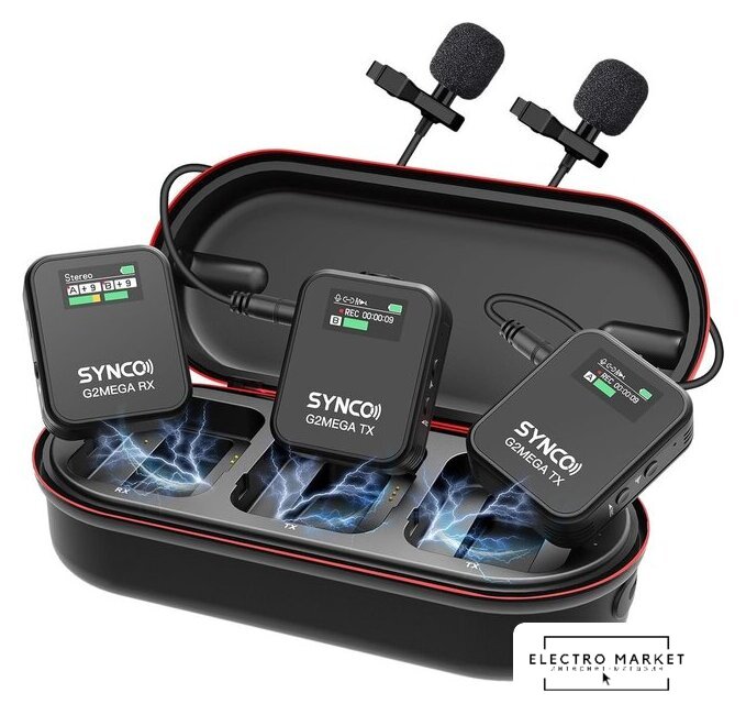 Комплект поставки | - 2 передатчика- приемник - 2 петличных микрофона- 2 съемных ветрозащиты- аудиокабель 3.5 мм TRS-TRRS - аудиокабель 3,5 мм TRS-TRS- зарядный кабель USB Type-C - USB Type-C - переходник USB Type-С - USB Type-A - зарядный кейс- документация |