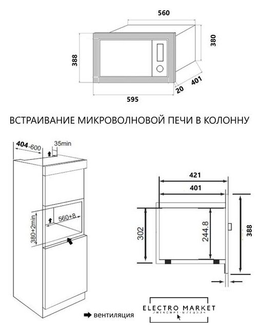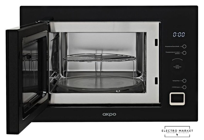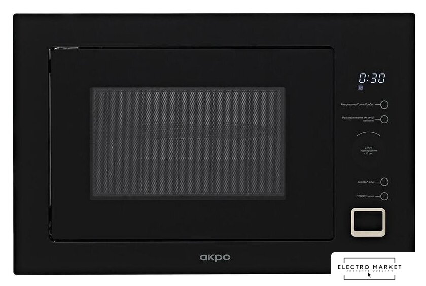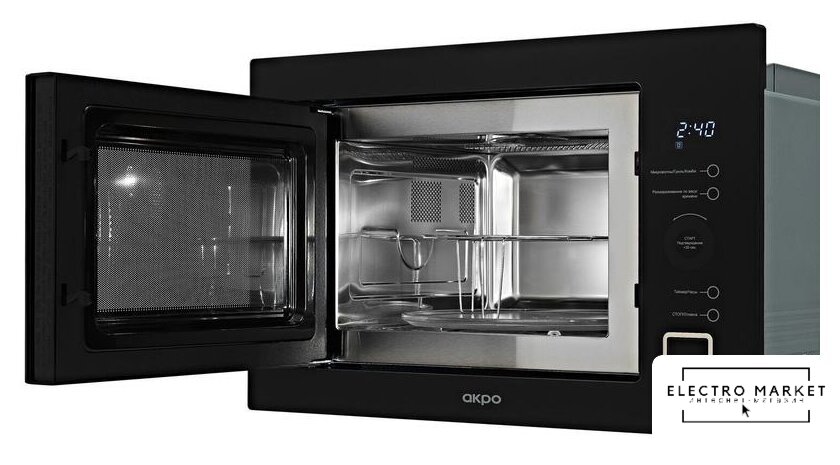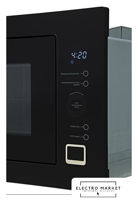 встраиваемая, микроволны и гриль, объем 25 л, выходная мощность микроволн 900 Вт, управление электронное, автоприготовление, авторазмораживание, цвет черный