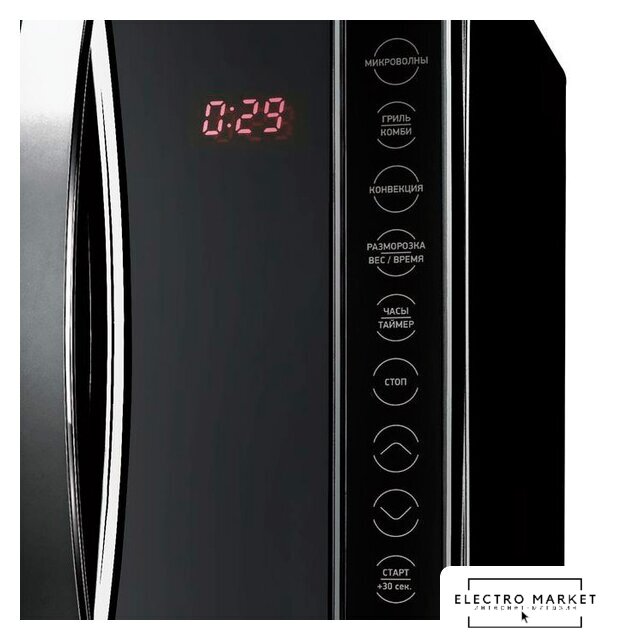 отдельностоящая, микроволны (соло), объем 23 л, выходная мощность микроволн 800 Вт, управление электронное, автоприготовление, авторазмораживание, цвет черный