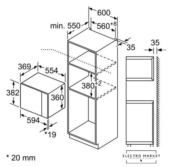 встраиваемая, микроволны (соло), объем 20 л, выходная мощность микроволн 700 Вт, управление механическое, цвет белый