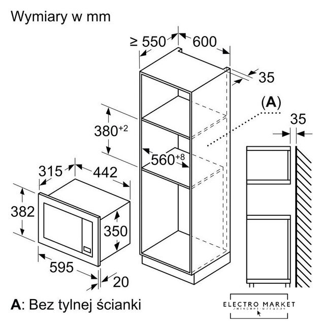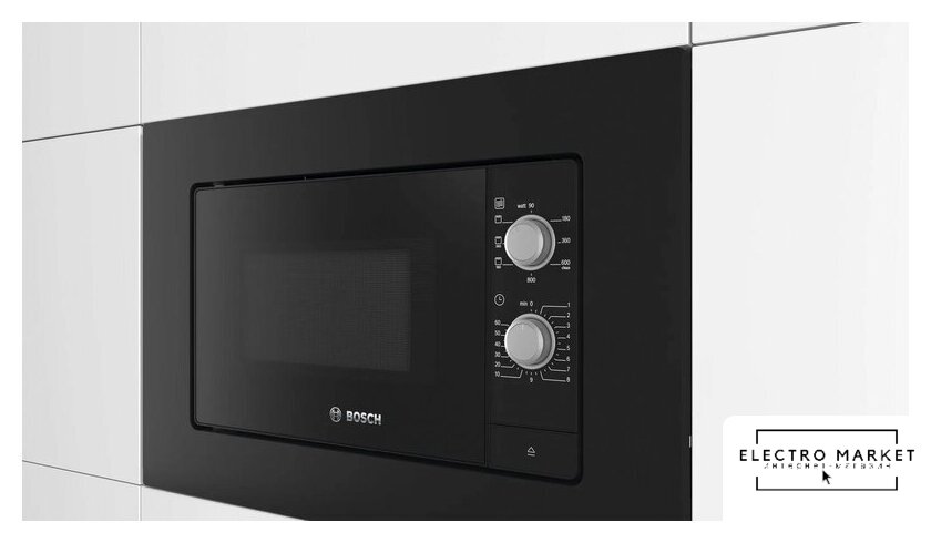 встраиваемая, микроволны (соло), объем 20 л, выходная мощность микроволн 850 Вт, управление электронное, автоприготовление, авторазмораживание, цвет черный