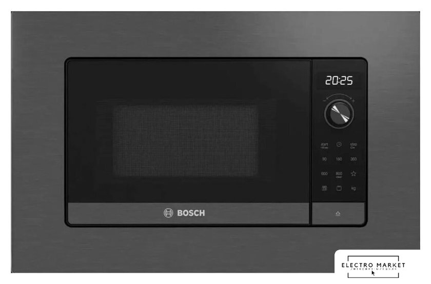 встраиваемая, микроволны и гриль, объем 25 л, выходная мощность микроволн 900 Вт, управление электронное, автоприготовление, авторазмораживание, цвет черный