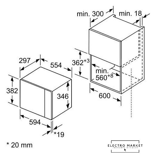 встраиваемая, микроволны (соло), объем 20 л, выходная мощность микроволн 800 Вт, управление электронное, авторазмораживание, цвет белый