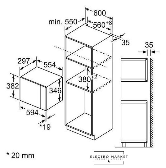 встраиваемая, микроволны и гриль, объем 20 л, выходная мощность микроволн 800 Вт, управление электронное, автоприготовление, авторазмораживание, цвет нержавеющая сталь
