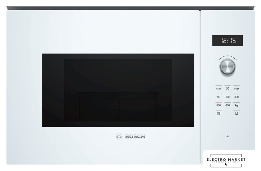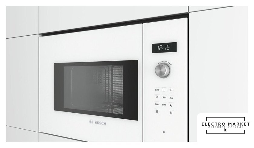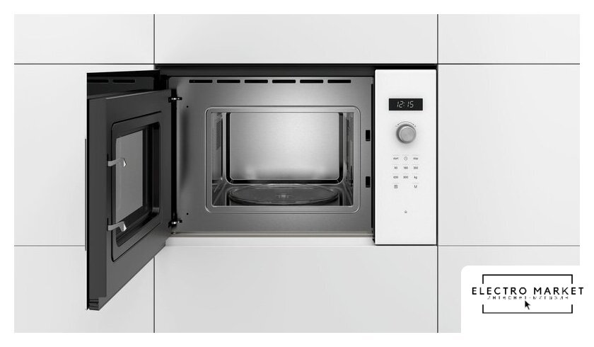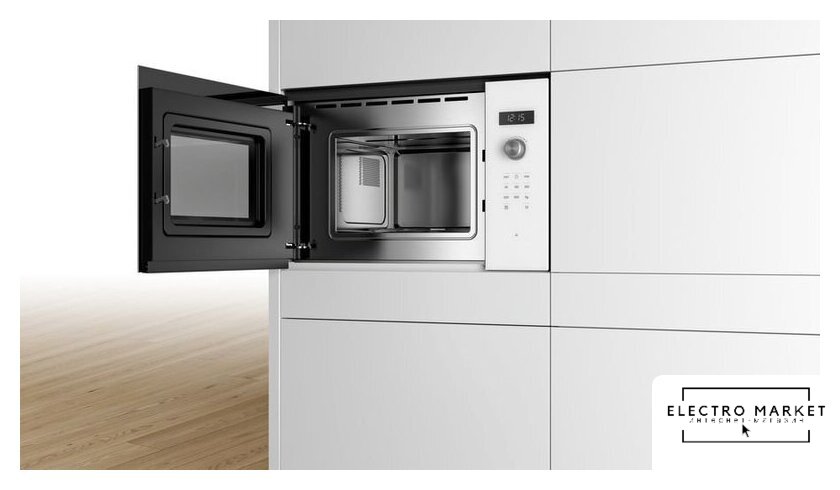 встраиваемая, микроволны и гриль, объем 25 л, выходная мощность микроволн 800 Вт, управление электронное, автоприготовление, авторазмораживание, цвет белый