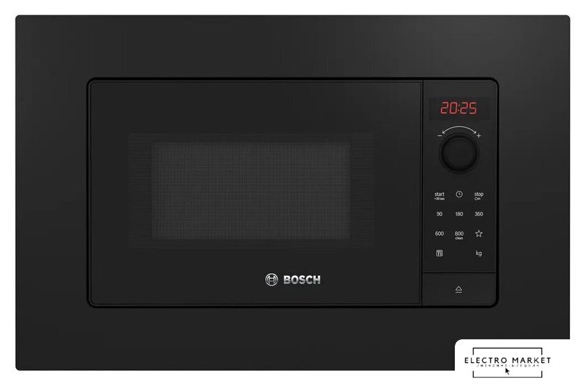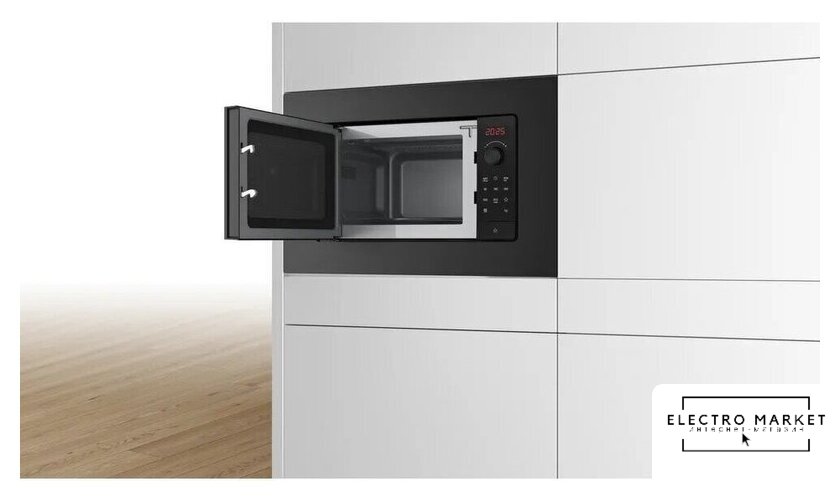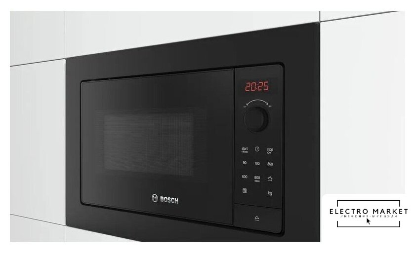 встраиваемая, микроволны (соло), объем 25 л, выходная мощность микроволн 900 Вт, управление электронное, автоприготовление, авторазмораживание, цвет черный