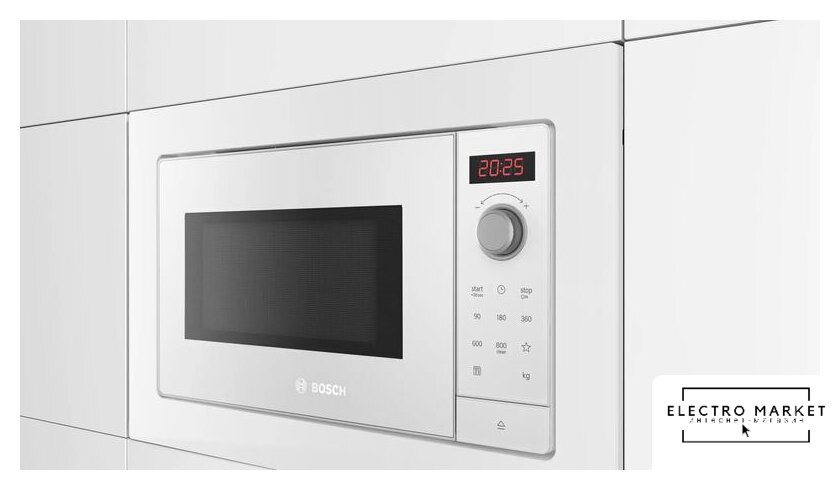 встраиваемая, микроволны и гриль, объем 25 л, выходная мощность микроволн 900 Вт, управление сенсорное, автоприготовление, авторазмораживание, цвет белый
