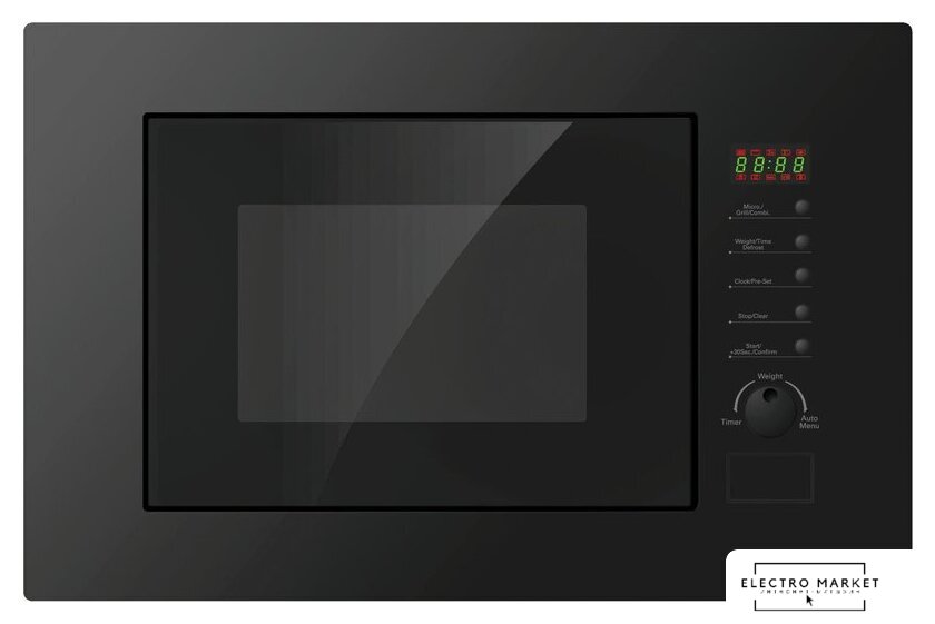 встраиваемая, микроволны и гриль, объем 18 л, выходная мощность микроволн 700 Вт, управление электронное, автоприготовление, авторазмораживание, цвет черный