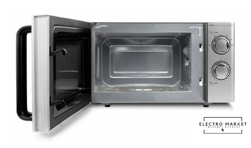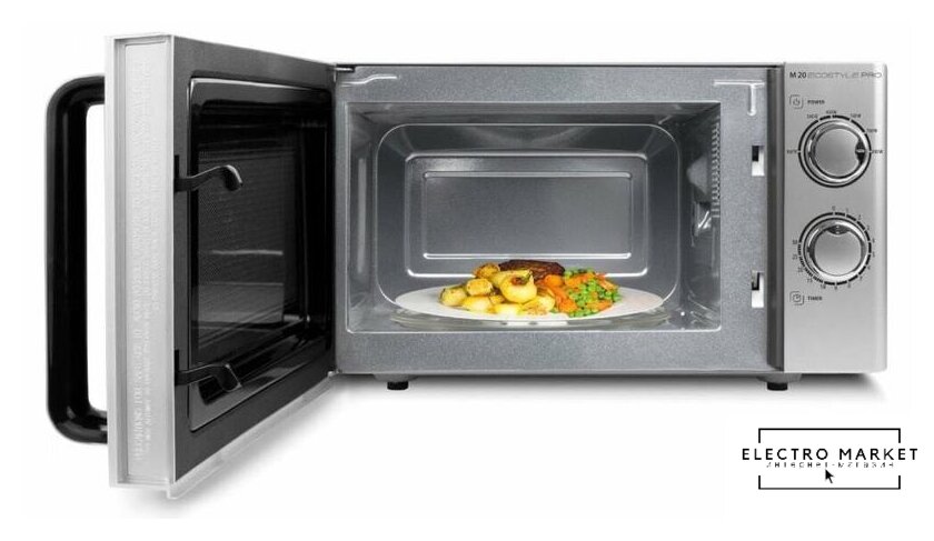 отдельностоящая, микроволны (соло), объем 23 л, выходная мощность микроволн 800 Вт, управление механическое, автоприготовление, авторазмораживание, цвет серебристый