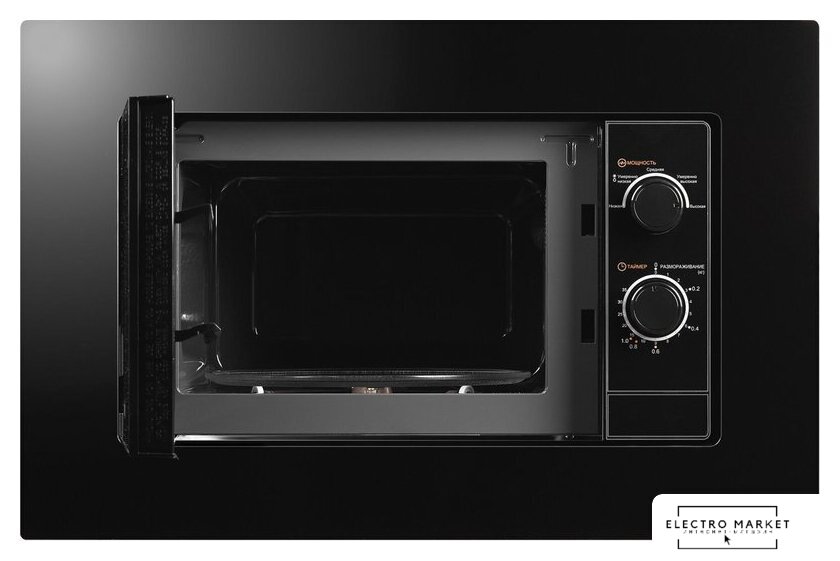 встраиваемая, микроволны и гриль, объем 20 л, выходная мощность микроволн 700 Вт, управление механическое, цвет черный