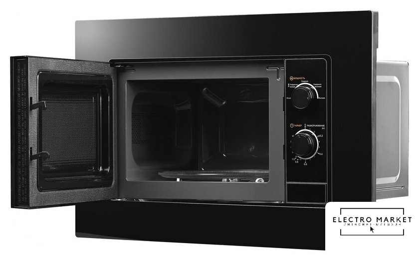 встраиваемая, микроволны (соло), объем 15 л, выходная мощность микроволн 600 Вт, управление механическое, цвет черный