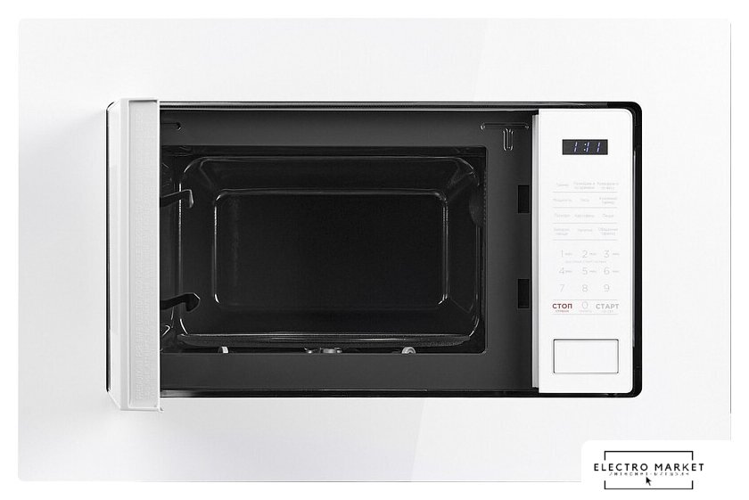 встраиваемая, микроволны и гриль, объем 20 л, выходная мощность микроволн 700 Вт, управление электронное, автоприготовление, авторазмораживание, цвет черный