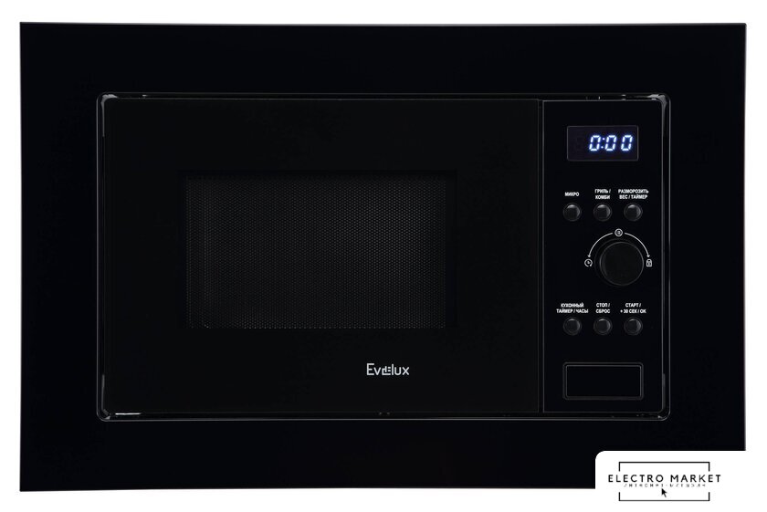 встраиваемая, микроволны и гриль, объем 23 л, выходная мощность микроволн 900 Вт, управление электронное, автоприготовление, авторазмораживание, цвет черный