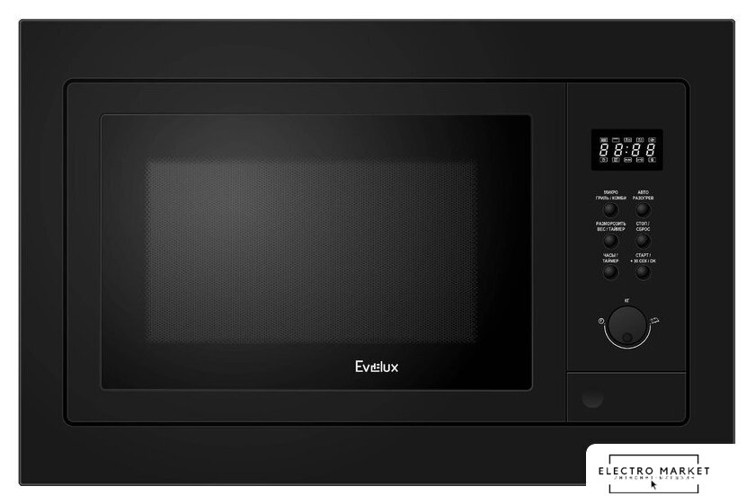 встраиваемая, микроволны и гриль, объем 20 л, выходная мощность микроволн 800 Вт, управление электронное, автоприготовление, авторазмораживание, цвет черный