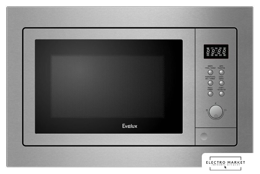 встраиваемая, микроволны и гриль, объем 25 л, выходная мощность микроволн 900 Вт, управление электронное, автоприготовление, авторазмораживание, цвет нержавеющая сталь/черный