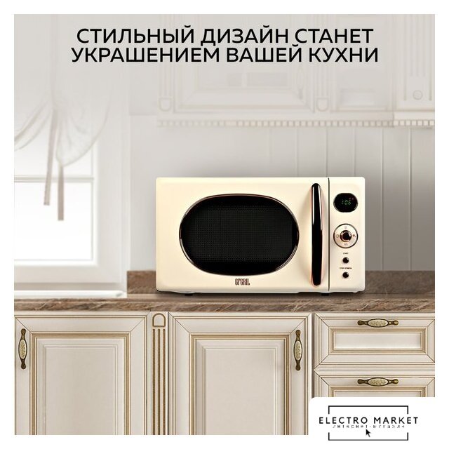 отдельностоящая, микроволны и гриль, объем 23 л, выходная мощность микроволн 800 Вт, управление сенсорное, автоприготовление, авторазмораживание, цвет серый