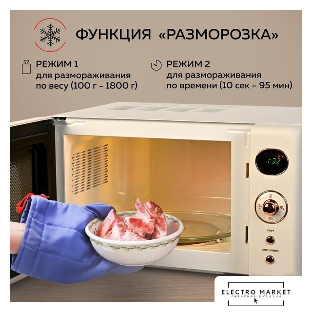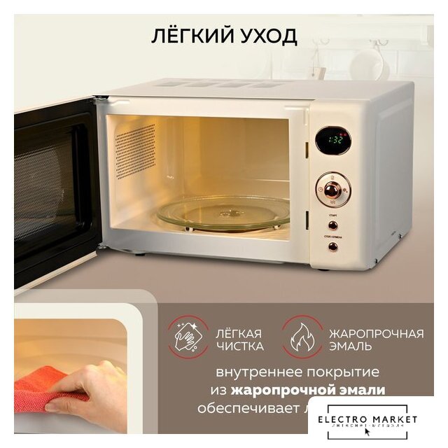 отдельностоящая, микроволны (соло), объем 23 л, выходная мощность микроволн 800 Вт, управление сенсорное, автоприготовление, авторазмораживание, цвет зеленый