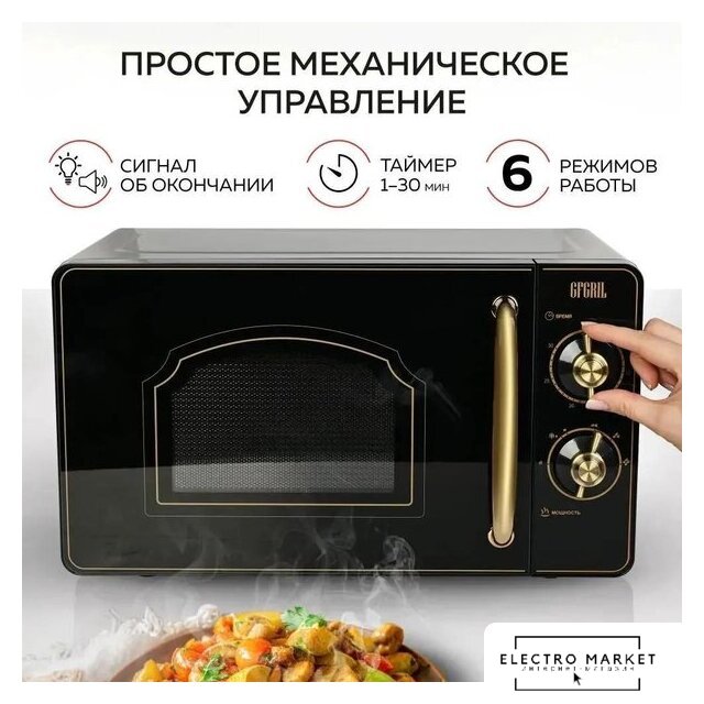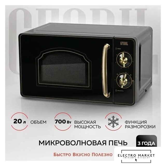 отдельностоящая, микроволны (соло), объем 25 л, выходная мощность микроволн 900 Вт, управление сенсорное, автоприготовление, авторазмораживание, цвет черный