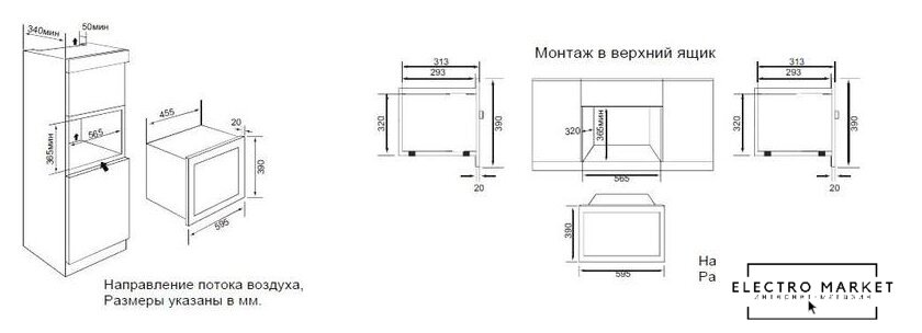 встраиваемая, микроволны и гриль, объем 20 л, выходная мощность микроволн 800 Вт, управление механическое, цвет черный
