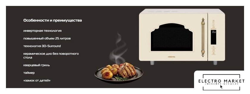 отдельностоящая, микроволны, гриль и конвекция, объем 25 л, выходная мощность микроволн 900 Вт, управление электронное, автоприготовление, авторазмораживание, цвет черный