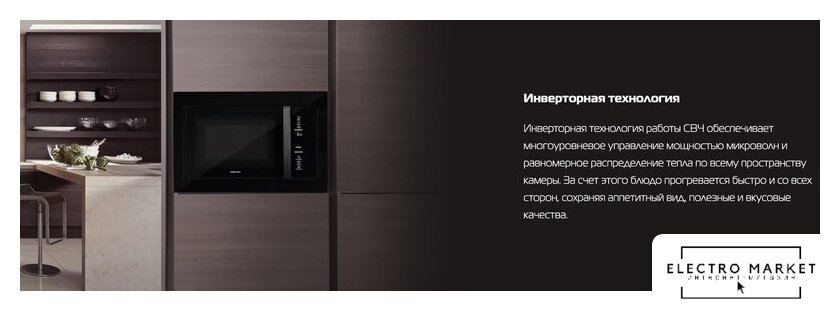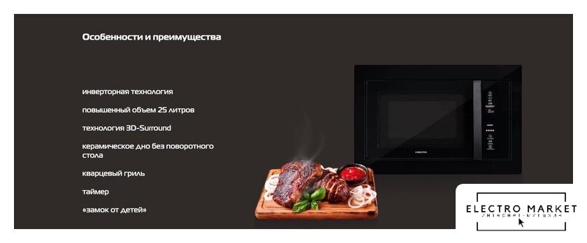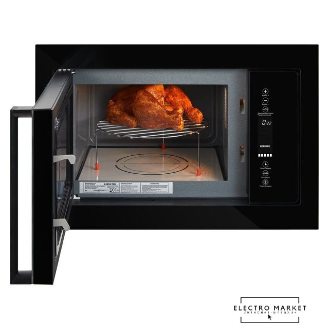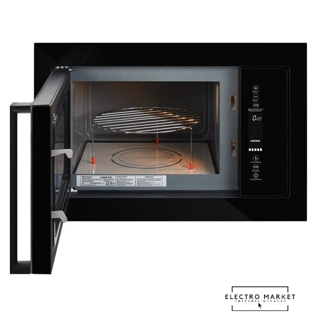 встраиваемая, микроволны (соло), объем 23 л, выходная мощность микроволн 800 Вт, управление электронное, автоприготовление, авторазмораживание, цвет черный