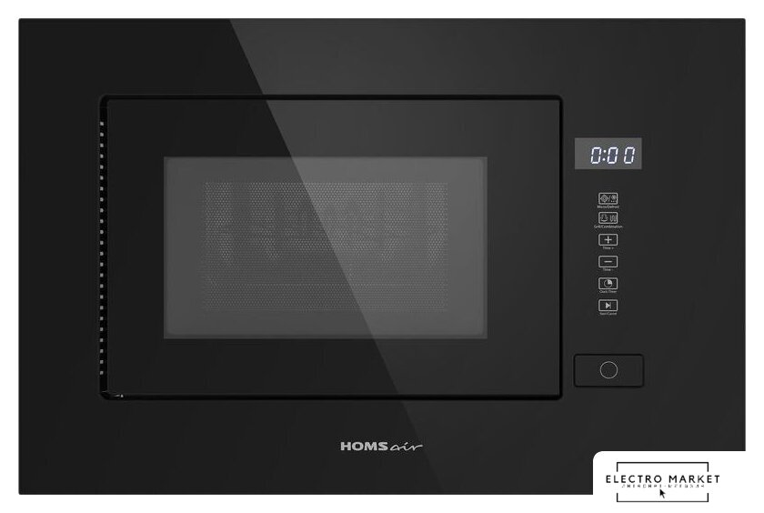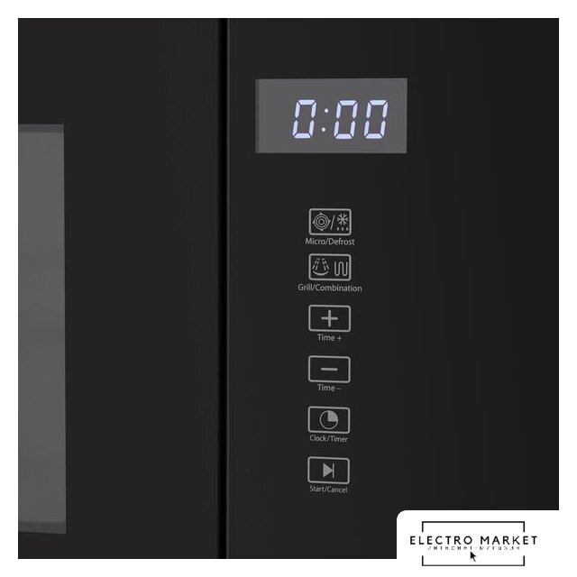 встраиваемая, микроволны и гриль, объем 25 л, выходная мощность микроволн 850 Вт, управление электронное, автоприготовление, авторазмораживание, цвет черный