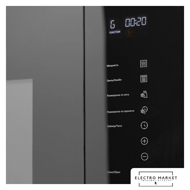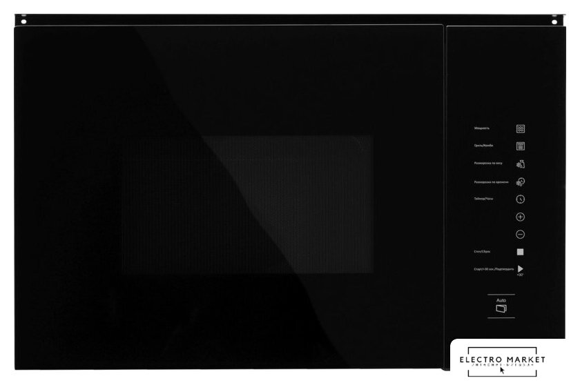 встраиваемая, микроволны и гриль, объем 25 л, выходная мощность микроволн 900 Вт, управление сенсорное, автоприготовление, авторазмораживание, цвет черный