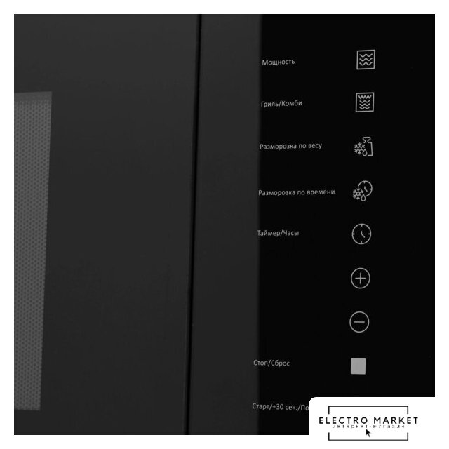 встраиваемая, микроволны и гриль, объем 26 л, выходная мощность микроволн 900 Вт, управление сенсорное, автоприготовление, авторазмораживание, цвет черный