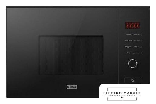 встраиваемая, микроволны (соло), объем 23 л, выходная мощность микроволн 800 Вт, управление электронное, автоприготовление, авторазмораживание, цвет черный