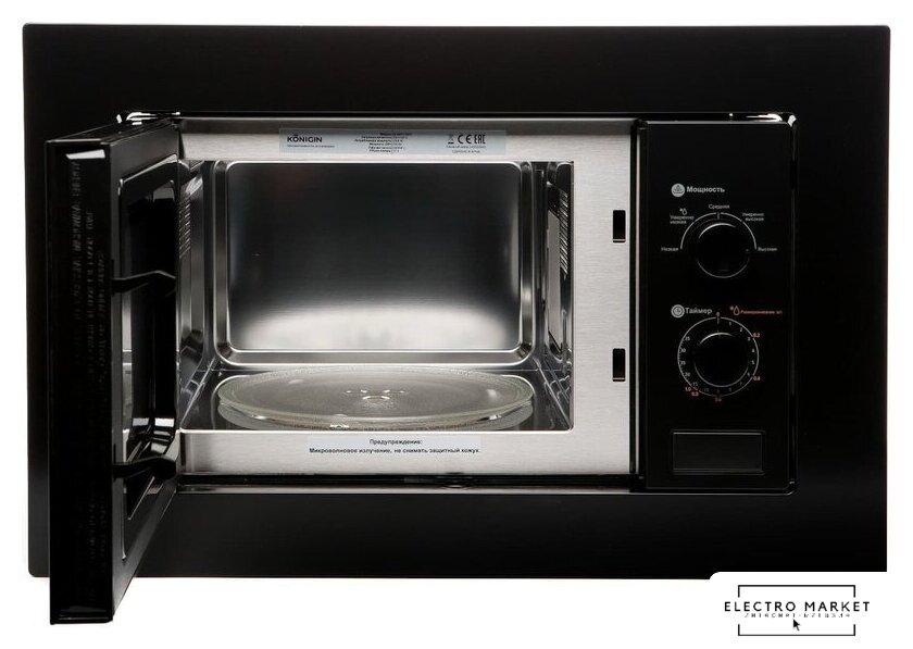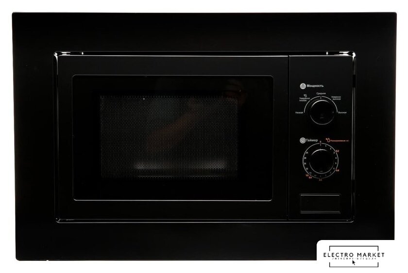 встраиваемая, микроволны и гриль, объем 20 л, выходная мощность микроволн 700 Вт, управление механическое, цвет черный