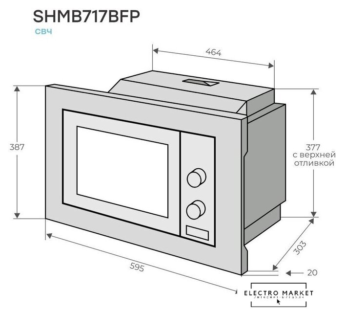 встраиваемая, микроволны и гриль, объем 20 л, выходная мощность микроволн 800 Вт, управление электронное, автоприготовление, авторазмораживание, цвет нержавеющая сталь