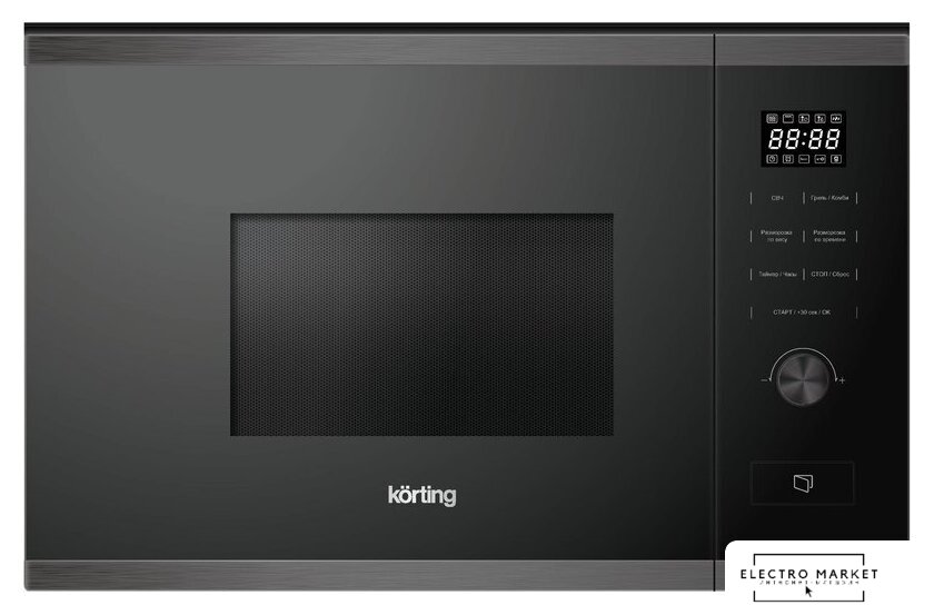 встраиваемая, микроволны и гриль, объем 25 л, выходная мощность микроволн 900 Вт, управление электронное, автоприготовление, авторазмораживание, цвет черный