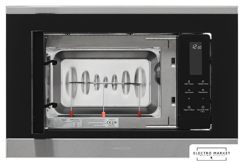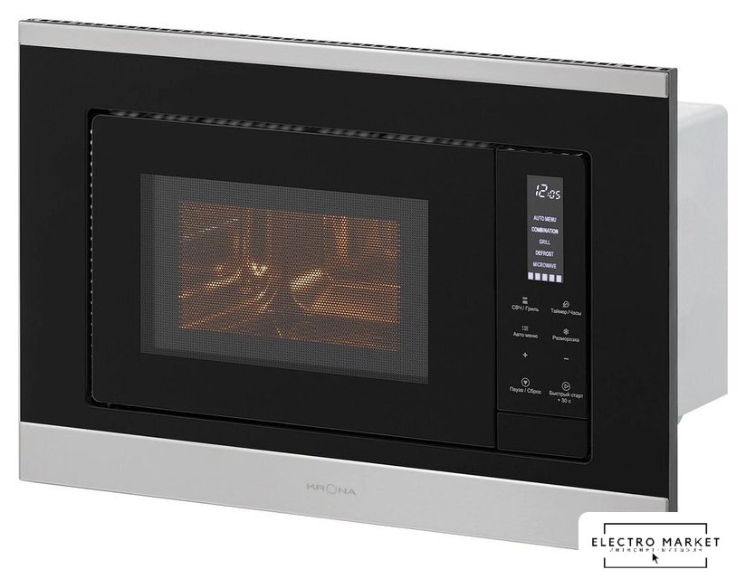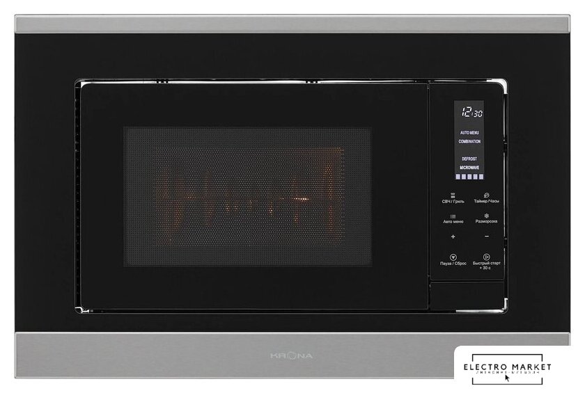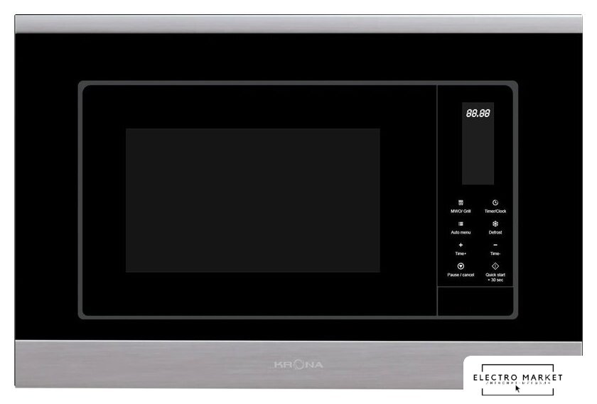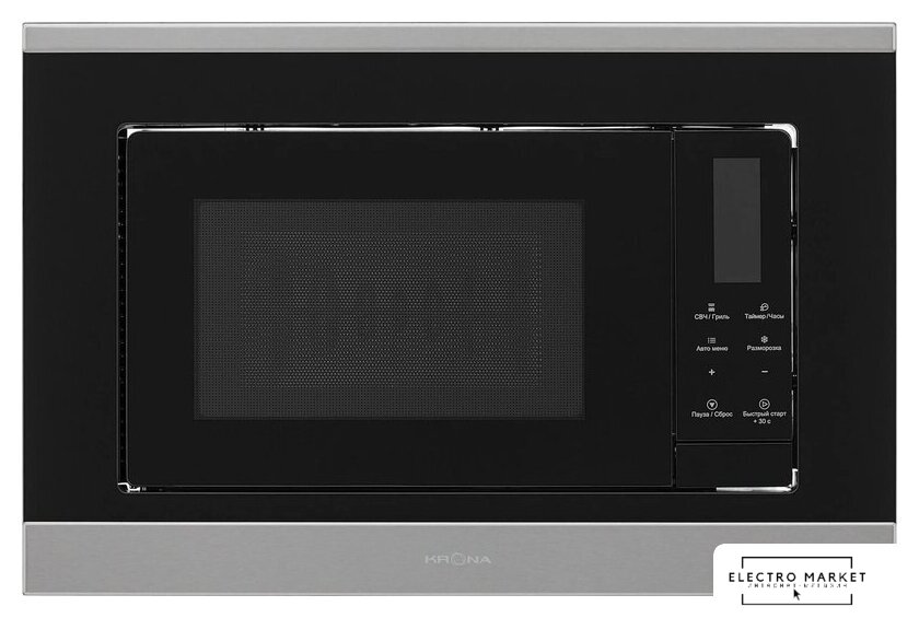встраиваемая, микроволны и гриль, объем 23 л, выходная мощность микроволн 800 Вт, управление электронное, автоприготовление, авторазмораживание, цвет нержавеющая сталь/черный