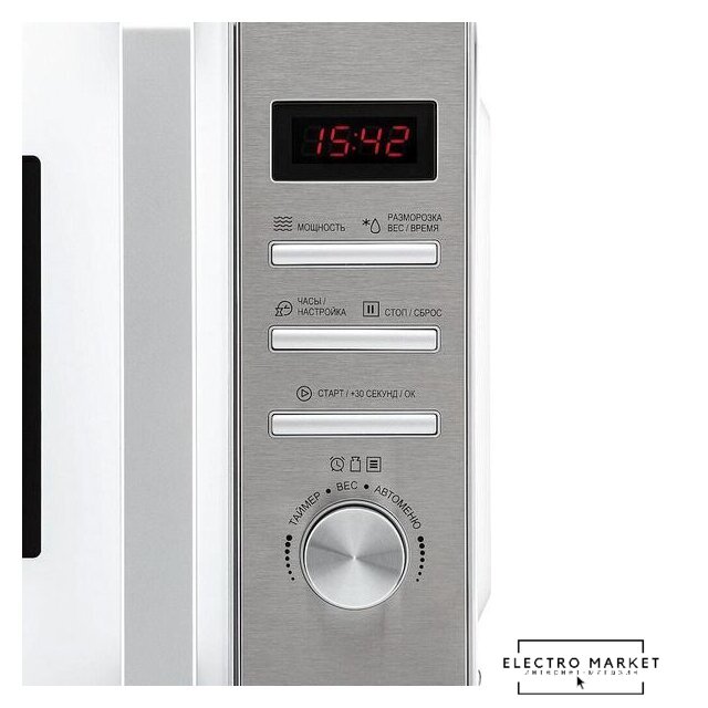 отдельностоящая, микроволны и гриль, объем 20 л, выходная мощность микроволн 800 Вт, управление сенсорное, автоприготовление, авторазмораживание, цвет белый
