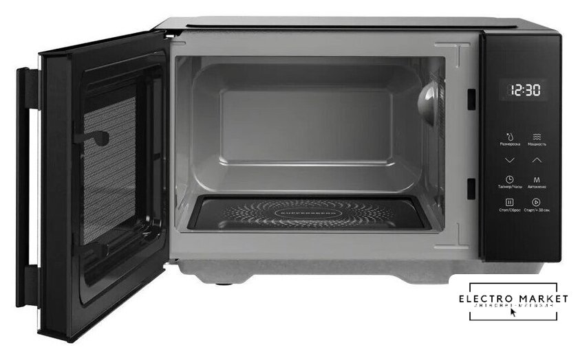 отдельностоящая, микроволны и гриль, объем 23 л, выходная мощность микроволн 1000 Вт, управление электронное, автоприготовление, авторазмораживание, цвет черный