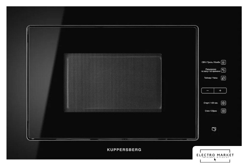 встраиваемая, микроволны и гриль, объем 34 л, выходная мощность микроволн 900 Вт, управление сенсорное, автоприготовление, авторазмораживание, цвет черный