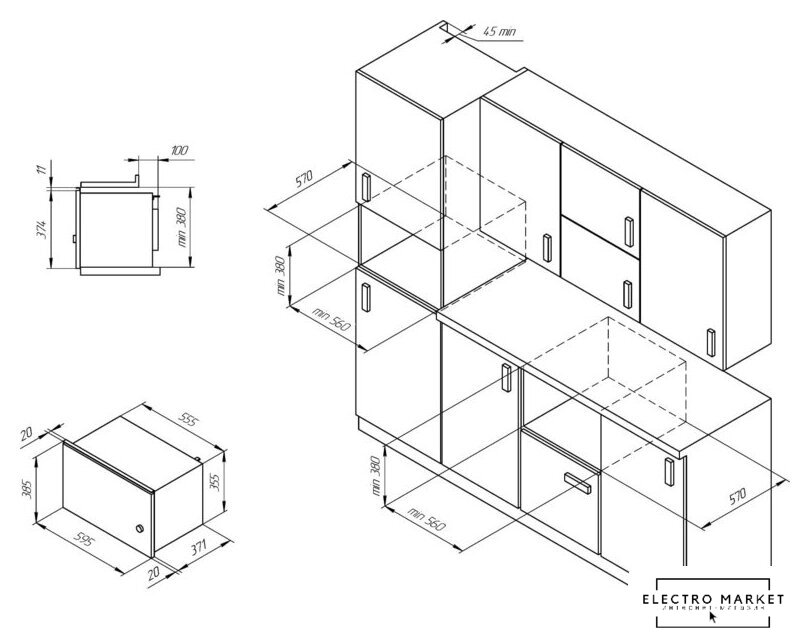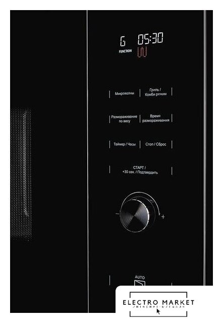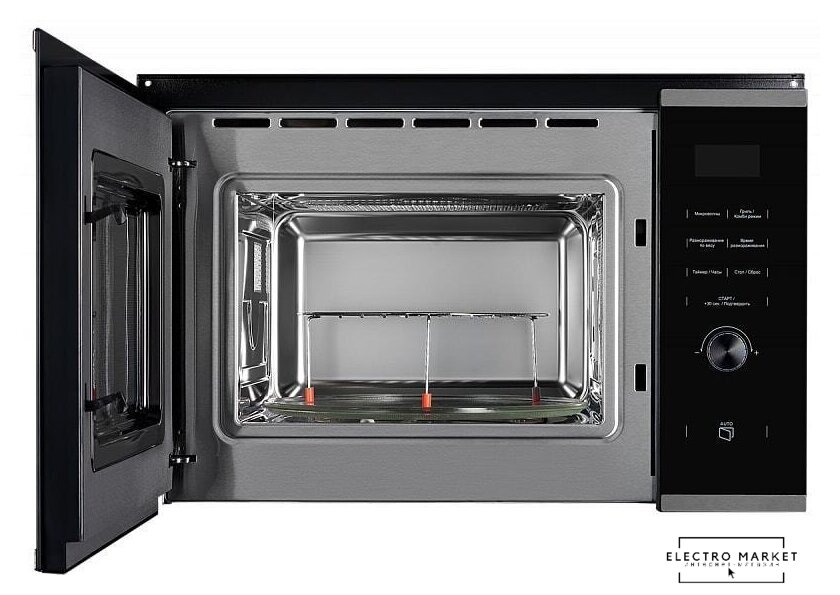 встраиваемая, микроволны (соло), объем 20 л, выходная мощность микроволн 800 Вт, управление электронное, автоприготовление, авторазмораживание, цвет черный