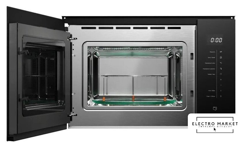 встраиваемая, микроволны (соло), объем 20 л, выходная мощность микроволн 800 Вт, управление электронное, автоприготовление, авторазмораживание, цвет нержавеющая сталь/черный