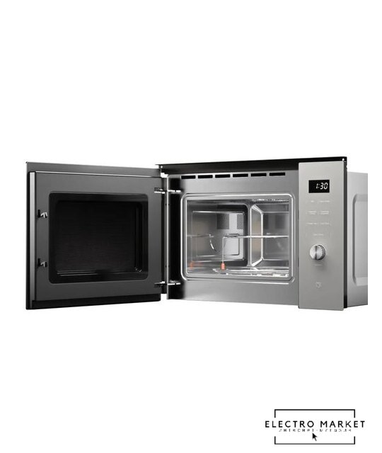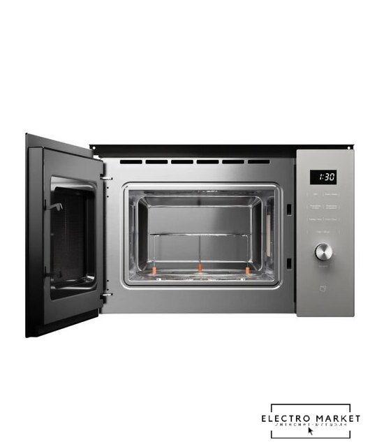 встраиваемая, микроволны (соло), объем 25 л, выходная мощность микроволн 900 Вт, управление электронное, автоприготовление, авторазмораживание, цвет нержавеющая сталь/черный
