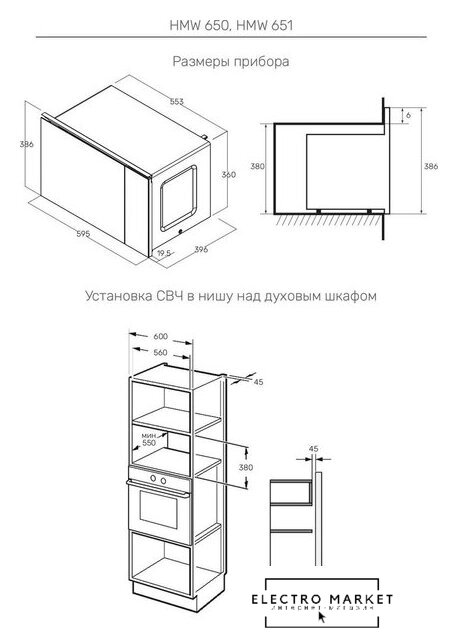 встраиваемая, микроволны и гриль, объем 20 л, выходная мощность микроволн 800 Вт, управление электронное, автоприготовление, авторазмораживание, цвет черный