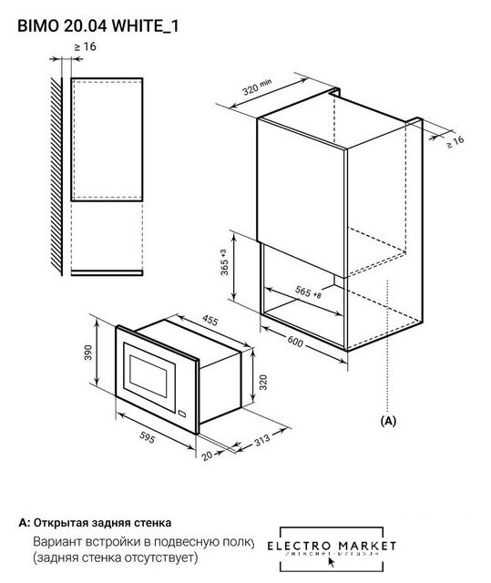 встраиваемая, микроволны и гриль, объем 20 л, выходная мощность микроволн 700 Вт, управление механическое, автоприготовление, авторазмораживание, цвет белый