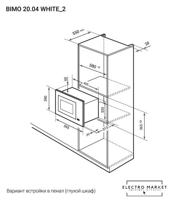 встраиваемая, микроволны и гриль, объем 20 л, выходная мощность микроволн 800 Вт, управление электронное, авторазмораживание, цвет белый